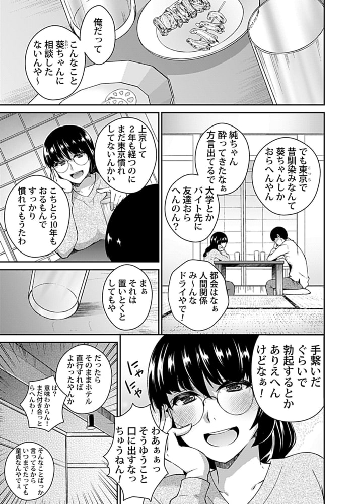 純は大阪から上京してきた大学生。デート中に手を繋いだだけで勃起してしまったと同郷の葵に相談するも笑われてしまう。そんな純のモノを見てみたいと2人でホテルに入るのだった。