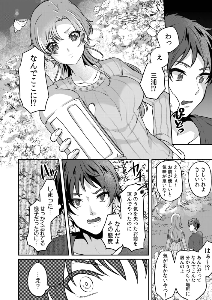 花見の打ち合わせ中に七瀬(ななせ)さんとの夢のような時間や感触を思い出す遠藤(えんどう)。友人に呼ばれ、三浦(みうら)にはあきれられる。じゃんけんの結果、遠藤が花見の場所取りを1人ですることになる。そこに三浦が差し入れをもって訪れて来てくれる。前夜の記憶があいまいであることに気づいた遠藤は思わず後ろから抱きしめて…