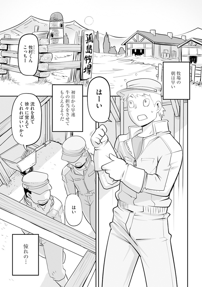 孤島牧場に勤めることになった牧村は、初日から牛の担当をさせてもらえることになった。