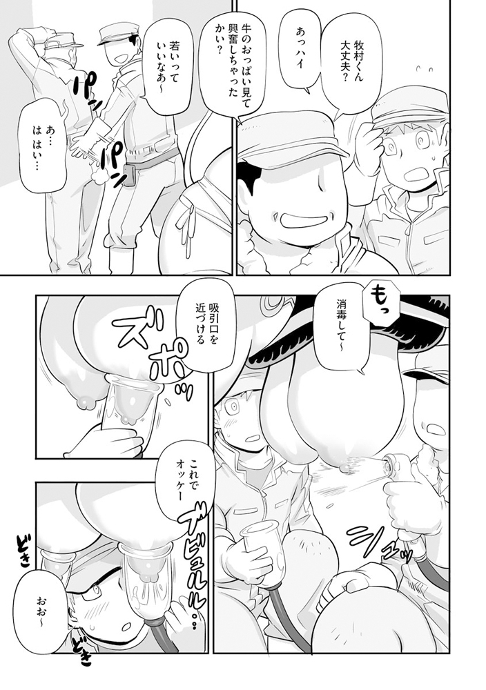 牧村をすぐに気に入った彼女を相手に、牧村は彼の夢であった「乳牛相手に童貞卒業」をかなえるべく向かっていくのだった!!