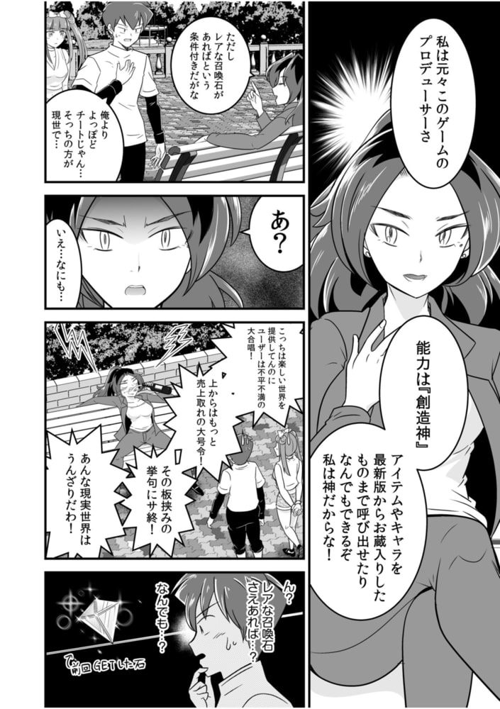 ゲームの世界の人間ではなさそうと感じたキョータは、その女に声を掛けたらなんとこのゲームのプロデューサーだった!