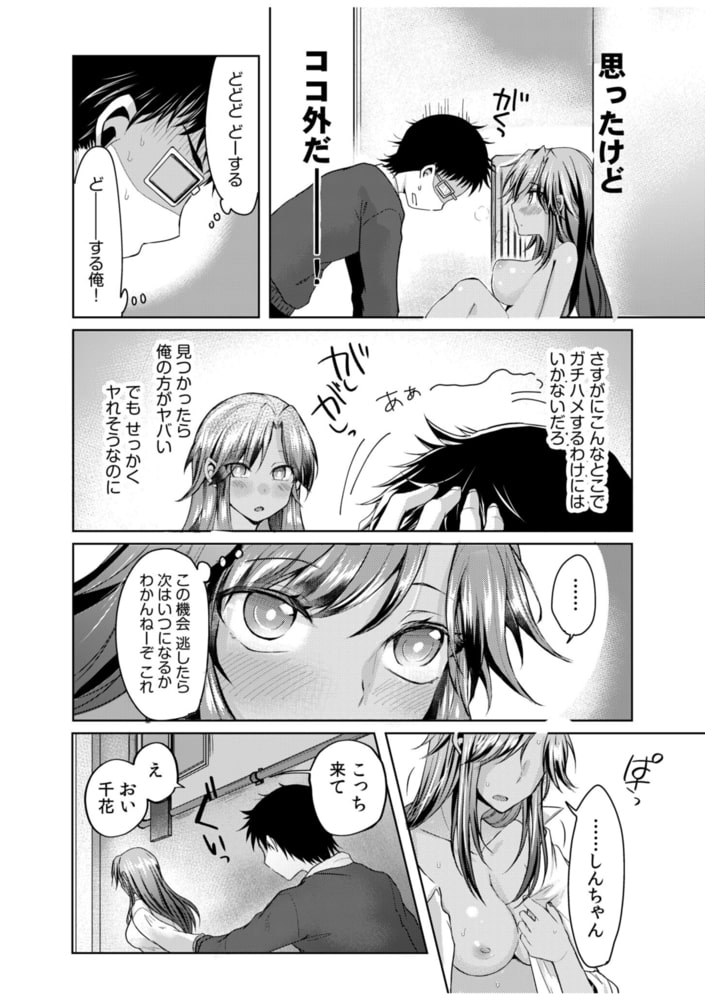 「しんちゃんのおおきいのでキスされたくなっちゃったの…」千花の初めてをいただこうと、人気のいないところへ移動する二人…。半信半疑ながらも挿入をするのだが、はじめて。と言うのはどうやら本当だったようで、、、困惑する真一に、千花の記憶は戻りつつあり、、、「俺のこと小さいころからすきだったんだろ」。急速に距離が縮まる二人…。
