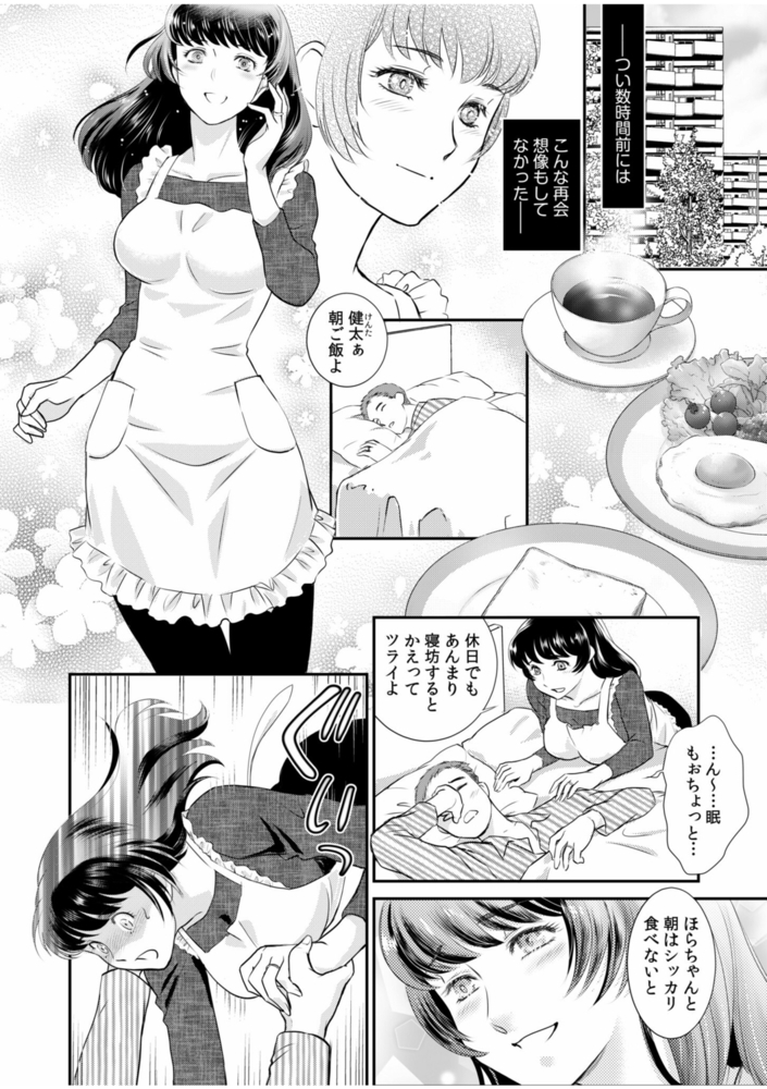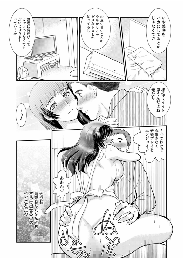 街中で温泉宿のマッサージ師と再会する美咲(みさき)。驚きながらも、自分の名前を覚えてくれていたことや結婚したことを祝福してくれたことに照れる。夫の健太(けんた)とも良好で、朝から裸エプロンプレイや、お互いに以前とは違うエッチも自然と楽しめている居心地の良さを満喫していた。