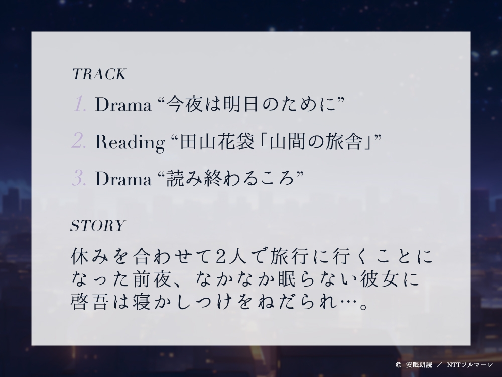 - 安眠朗読 今夜も眠らNight 恋人・啓吾が読む「田山花袋『山間の旅舎』」