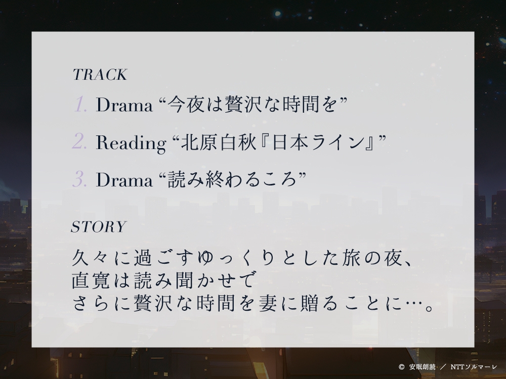 ![安眠朗読 今夜も眠らNight 夫・直寛が読む「北原白秋『日本ライン』」 [安眠朗読] 安眠朗読 今夜も眠らNight 夫・直寛が読む「北原白秋『日本ライン』」 [安眠朗読]](http://img.dlsite.jp/modpub/images2/parts/BJ02348000/BJ02347429/BJ02347429_b83967029863699e0f4bf745b4993e45.jpg)