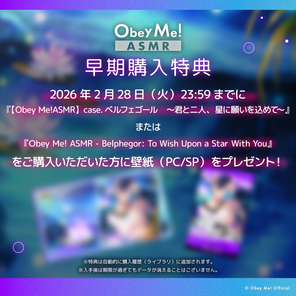 ![【Obey Me!ASMR】case.ベルフェゴール ~君と二人、星に願いを込めて~ [Obey Me!] 【Obey Me!ASMR】case.ベルフェゴール ~君と二人、星に願いを込めて~ [Obey Me!]](http://img.dlsite.jp/modpub/images2/parts/BJ02355000/BJ02354465/BJ02354465_42139651f96faa13cc89501b5791cf75.jpg)