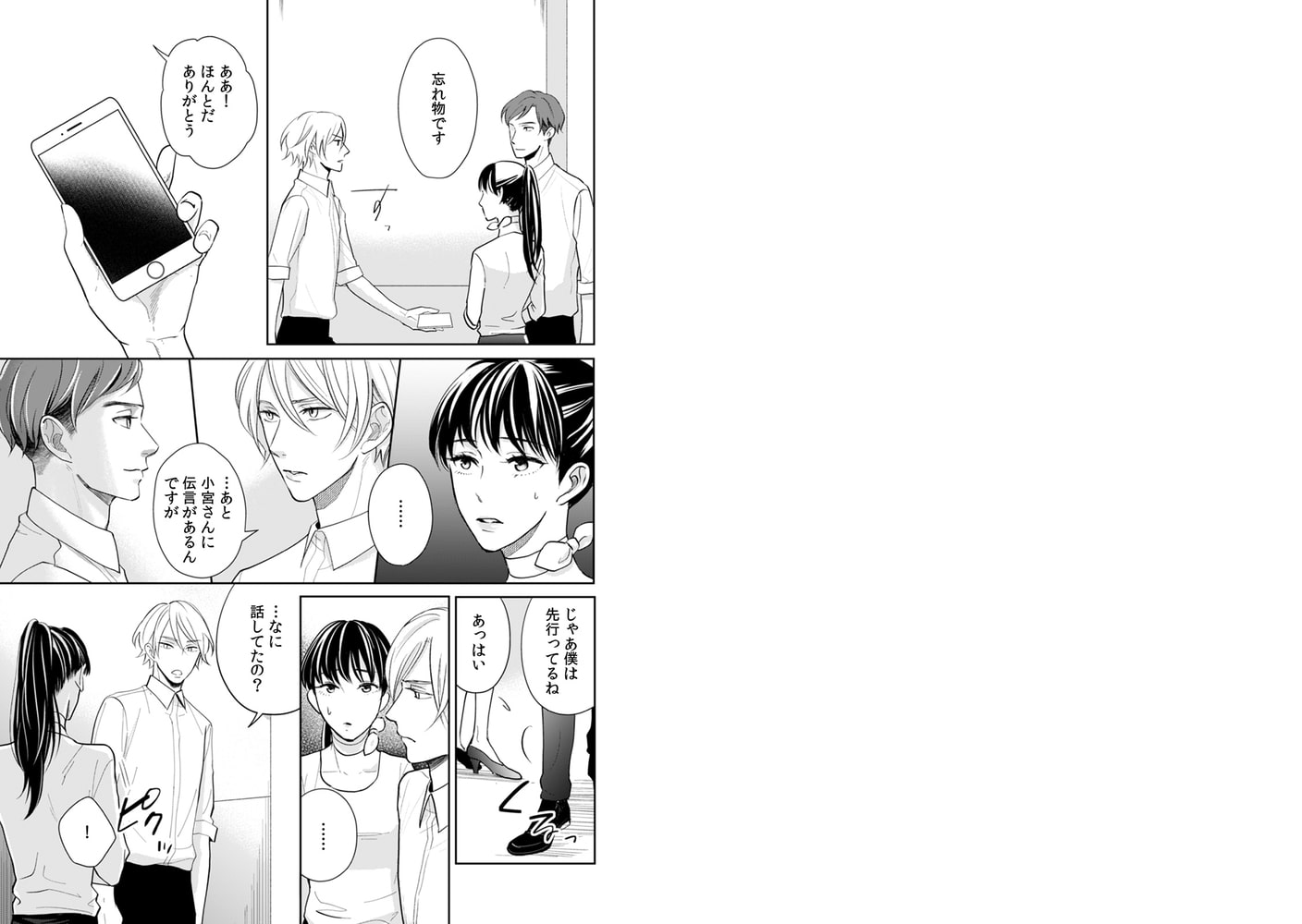 仕事に生きる美容部員の永遠(とわ)。新入りの美人オネエ・志信(しのぶ)の有能っぷりに闘争心を燃やしていたところ、突然のキス!グロスチェックって…スキンシップにしてもやり過ぎでしょ。トーク上手な(しかも女装が美人すぎる!)志信のペースに乗せられ、気を許してホテルに…。