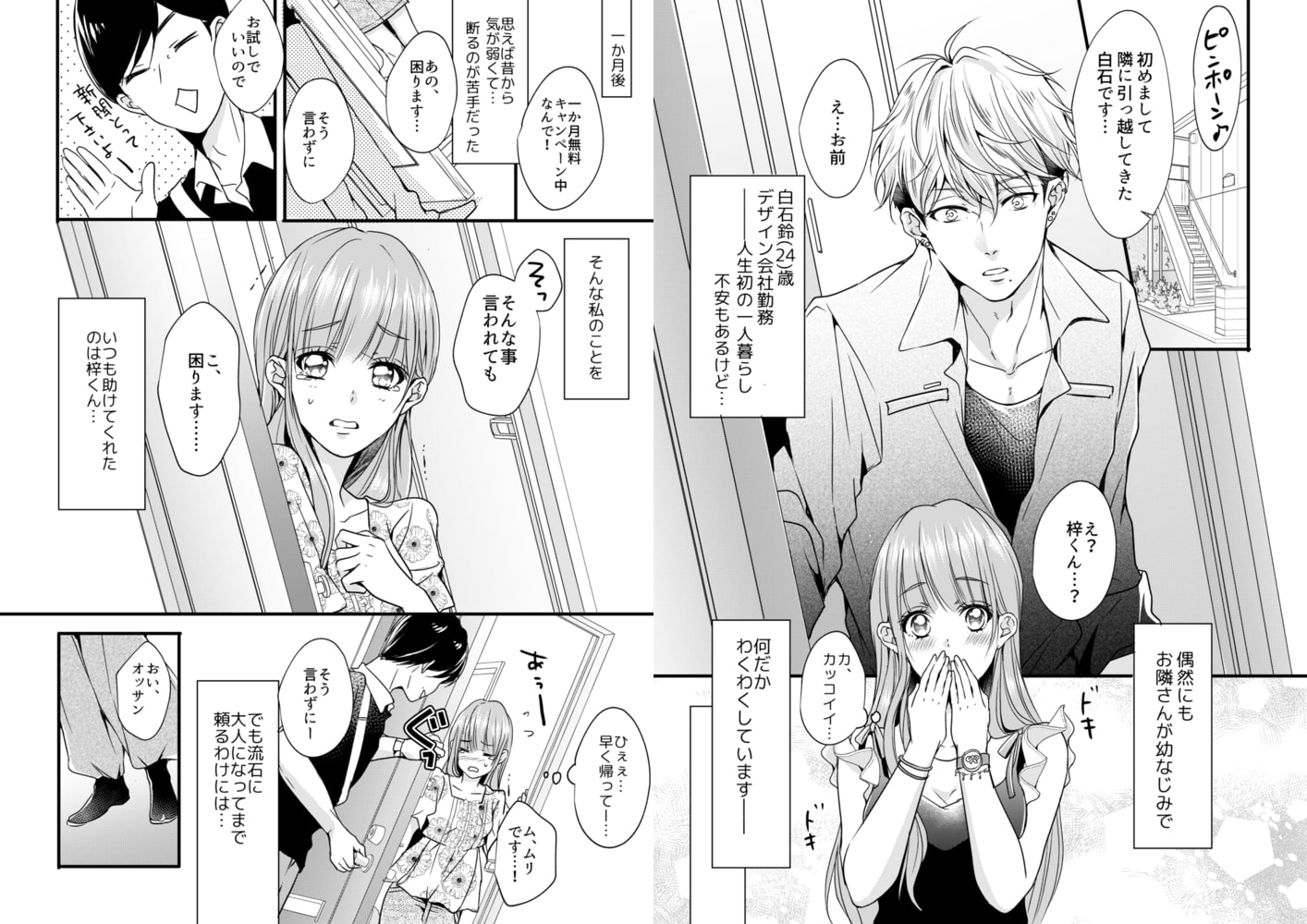 「もう無理…早くお前のナカ挿れたい」OLの鈴は、引っ越し先で幼なじみの梓くんと再会。見た目はガテン系でちょっと怖いけど、昔と変わらず面倒見がよくて優しくて…そんな彼に恋してしまう。ある夜、誘われるままに梓くんの部屋にあがったら突然豹変!「そんなに隙だらけだと全部食っちまうぞ」艶っぽい視線から目をそらすことが出来ないまま、キスされて。口の中をいっぱい舐め回され、気持ちよすぎて下着の中がもうグチョグチョ。全身を甘く愛撫されたら、こみ上げる快感に何も考えられなくなる。ついには敏感なトコロに熱く硬いものがゆっくり挿入ってきて…?私、このまま丸ごと食べられちゃうの…!?