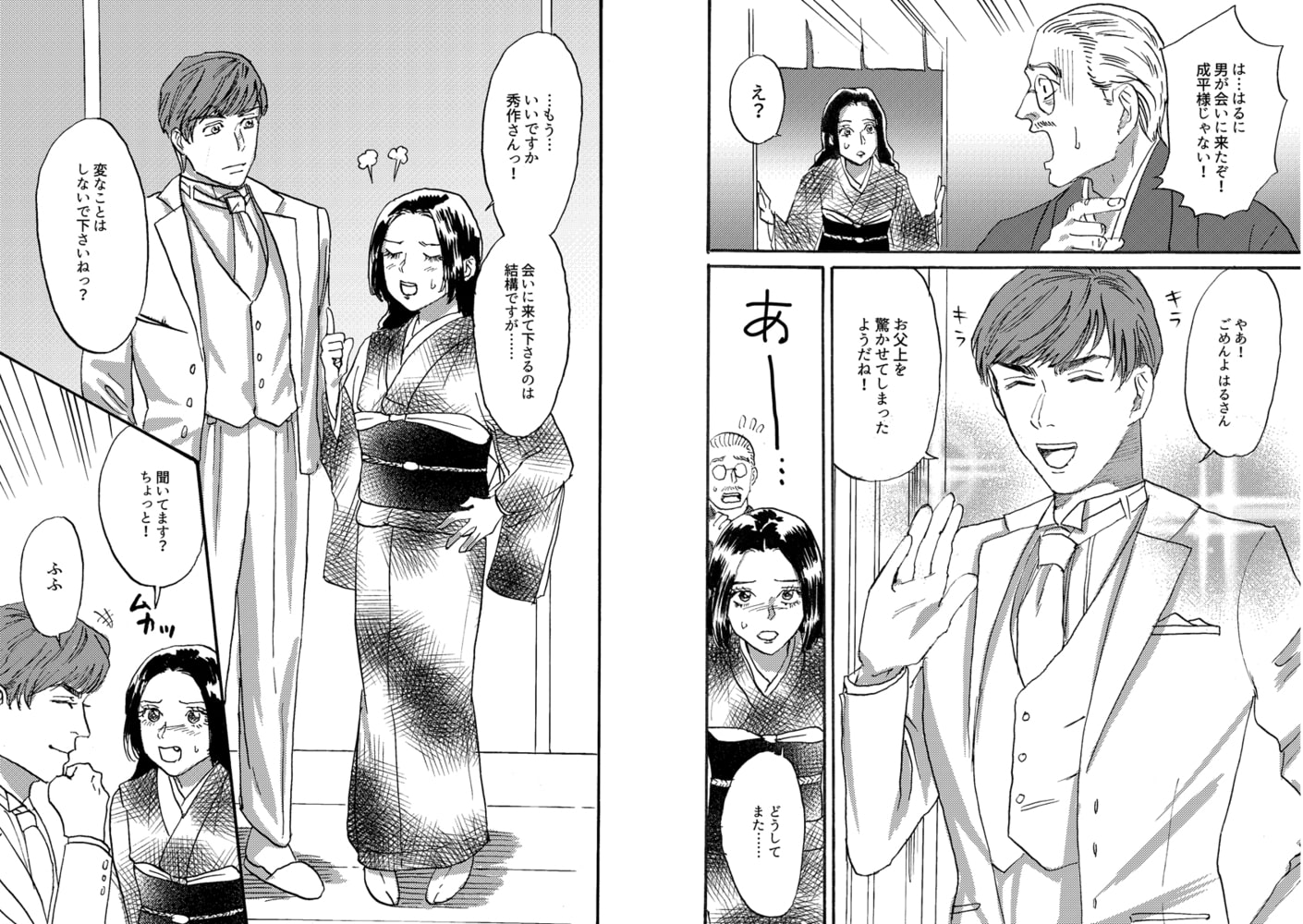 没落貴族を理由に、お見合い相手に軒並み断られ落ち込む女学生のはる。最後の相手は軍人様。傾いた家を立て直すために、絶対射止めなければ…!と決心する。そこに、陸軍准士官の成平が颯爽と馬に乗って駆けつける。はるに近づき手をとると「私の結婚相手になって下さいますか」と言い放つ。咄嗟のことに狼狽えるはるは、考えさせてくださいと保留にする。勉強熱心で真面目なはるは、戦争屋である軍人が苦手だったのだ。その後も続く成平の熱烈なアプローチに、心が揺れ動いていくはる。そんな折、家まで送ってもらう道すがら、成平に突然唇を奪われてしまう。普段は紳士的な成平が見せる、獲物を狙う獰猛な目つきにはるは…。