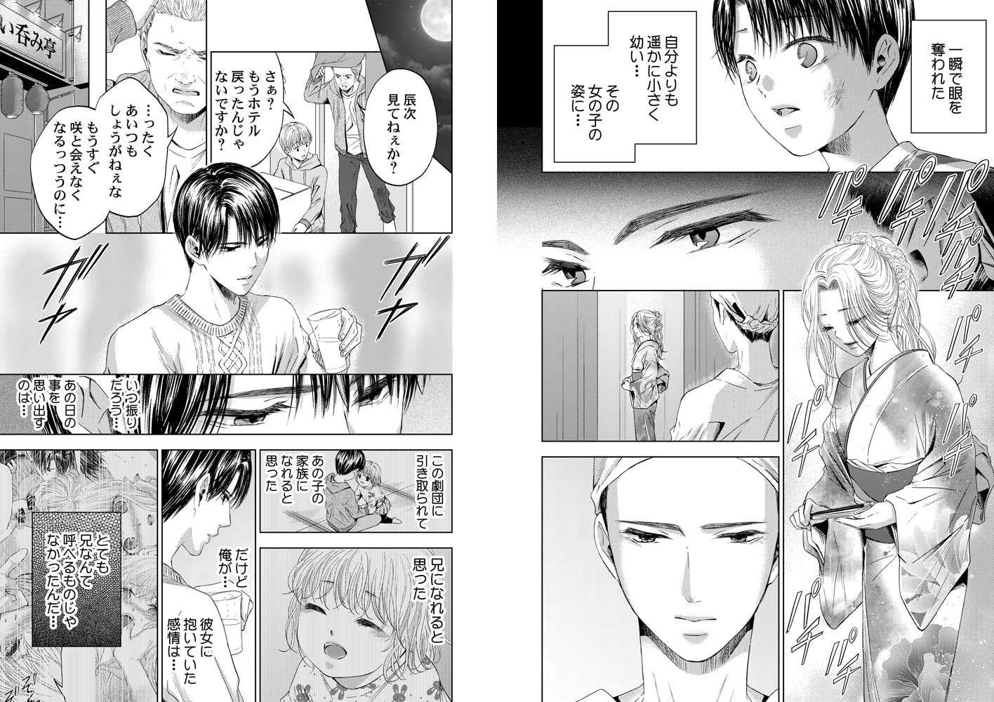 「じゃあこれも夢か?お前のここが…こんなにグショグショになってるのも…」私…この感触を知ってる…――劇団『春川座』の女形で看板役者の辰次とその妹で未熟な女優の咲。ある日の稽古中に辰次から「もう役者辞めれば?」と言われて落ち込む咲。そんな状況を見かねた劇団員の涼太郎は咲を食事に誘う。兄からのプレッシャーから逃げるべく酒を飲んだ咲はいつしか酔いつぶれてしまった。そこに現れたのは辰次。酔いつぶれた咲を見つけると涼太郎が目を離している間に宿泊先に連れ戻した。咲をベットに寝かせると「涼太郎さん…」という寝言が。その刹那にたがが外れて咲にキスをした――。涼太郎からの告白、そして兄からのゆがんだ情愛、咲の身体が求めるものは…!?