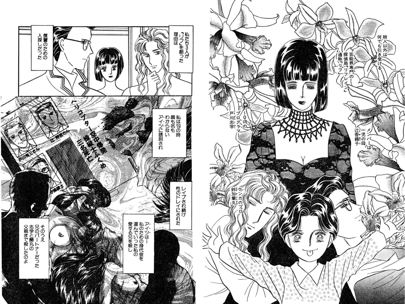 殺人以外の依頼なら何でも引き受けると噂の、芸能界専門の探偵事務所「リフレイン」。通称「リフ」と呼ばれるそこのリーダー、辻香織子は、探偵業務で芸能界の闇を暴く傍ら、自身を過去にレ○プした男を探していた……果たして彼女は因縁の相手を探し出すことができるのか