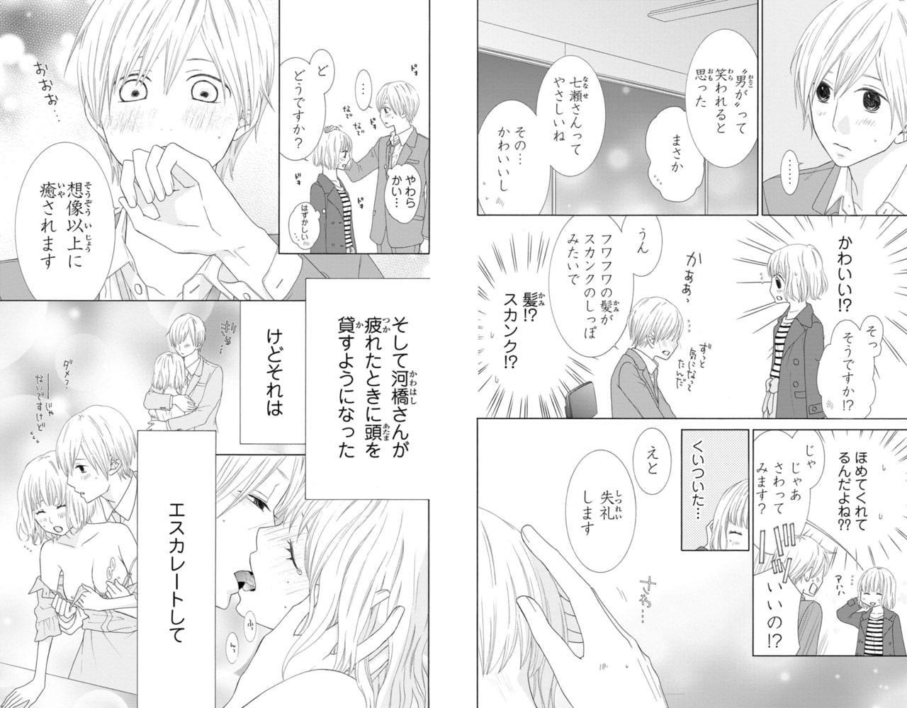 「今日は我慢できそうにないよ」会議室の机に押し倒され、ショーツをずらしてアソコを指でくちゅくちゅ弄られて…誰か来るかもしれないのに、そんなにしたら声が出ちゃう――! 営業の河橋さんは男性だけどかわいい物が大好き。かわいい物を見たり触れたりすると癒やされて、仕事の能率も上がるんだって。「七瀬さんもかわいい」って言われた日から、私は彼の『癒やし係』しているの。最初は頭をなでて髪に触れる程度の癒やし方だったんだけど、次第に行為がエスカレートしていって…!?