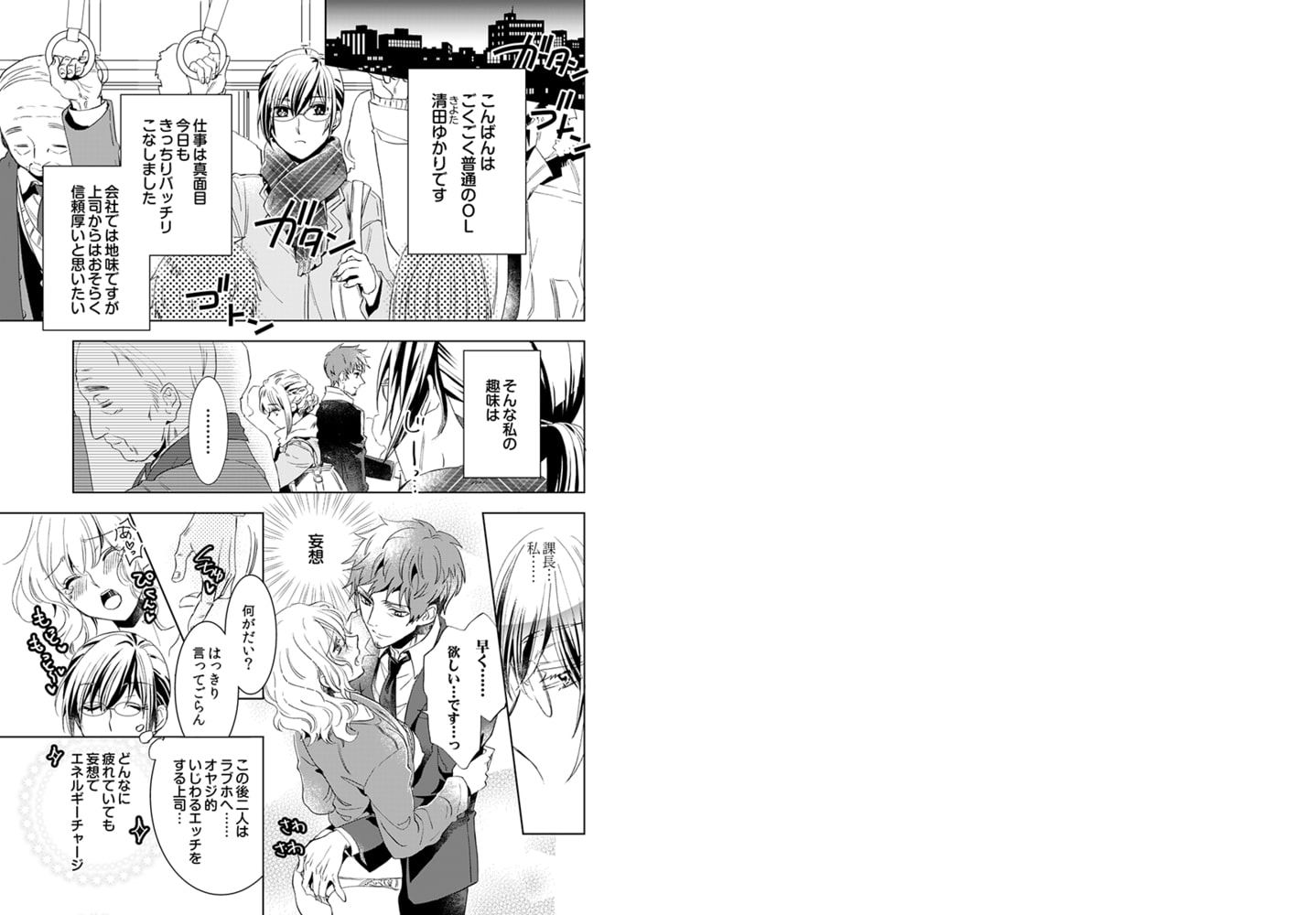 「そんな顔されたら我慢できなくなる」彼のあたたかくて柔らかい舌がナカで動いて、もっと欲しくなる…。真面目が取り柄のアラサー処女OL・清田(きよた)ゆかりの趣味――それはTL漫画。今日も電車で見かけたイケオジでエッチな妄想をしていると…酔っぱらって行き倒れている小野寺要(おのでらかなめ)を拾ってしまい――!?寒空のなか放っておくわけにもいかず、自宅に運ぶと寝ぼけた彼にベッドに引きずり込まれてしまって…!リアルなエッチってこんなに気持ちいいの…!?乳首と一緒にナカいじられたらイッちゃう…っ!普段は甘いのにエッチのときは意地悪な要に、むっつりスケベOLの脳内はエッチな妄想でいっぱいで――!?
