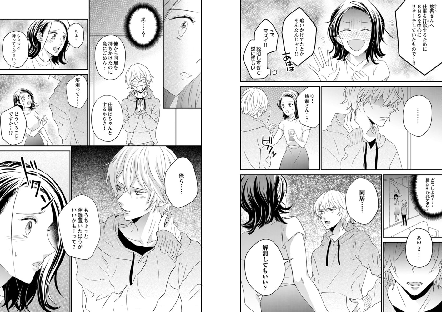 「下着の上からわかるくらい、もうしっかり濡れてる…」優しいキスで舌をからめられただけでも気持ちいいのに、指先で乳首を愛撫されながら耳元でささやかれたら…あんっ!恥ずかしい声が出ちゃう…!――コスメブランドの企画を担当する北山美咲(28)は、今をときめく憧れのイラストレーター・YOUGO(悠吾)を推しているガチファン。作品のみならず、日に何度もYOUGOのSNSをチェックするくらい、彼自身にも惹かれている。いつかYOUGOと仕事ができたらと、地道に人脈づくりを重ねた結果、ついに会うアポを取る。そんな推しとの仕事に意気込む美咲に、YOUGOが仕事を引き受ける条件として提示してきたのは…「契約期間中、家に泊めてよ」――まさかの突然の同居で!? しかもYOUGOは、あざとい上目遣いで美咲に迫ってきて――!? 推しと暮らせる夢のようなシチュエーション、突然の推しとの接触、このままだと心臓がもたない!!?