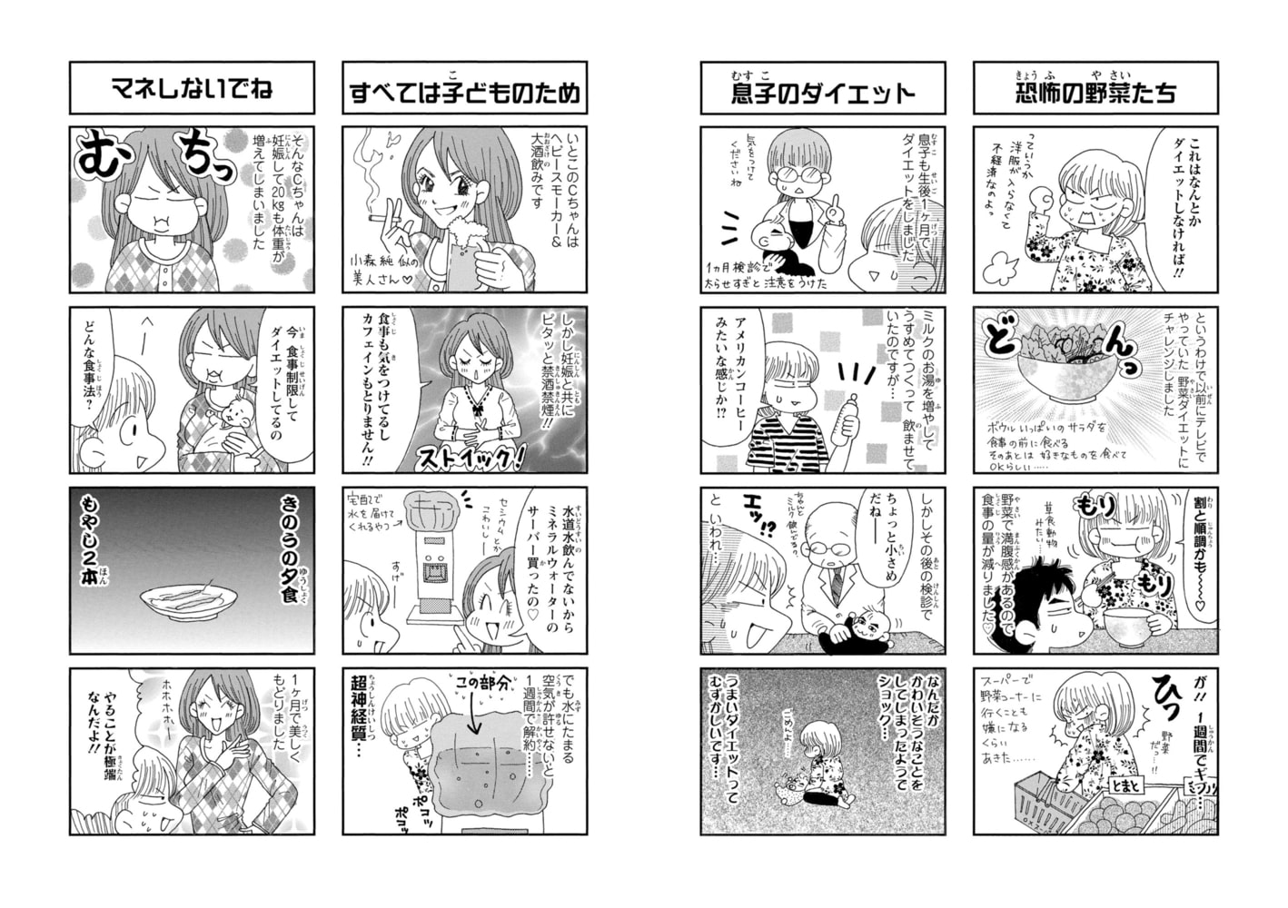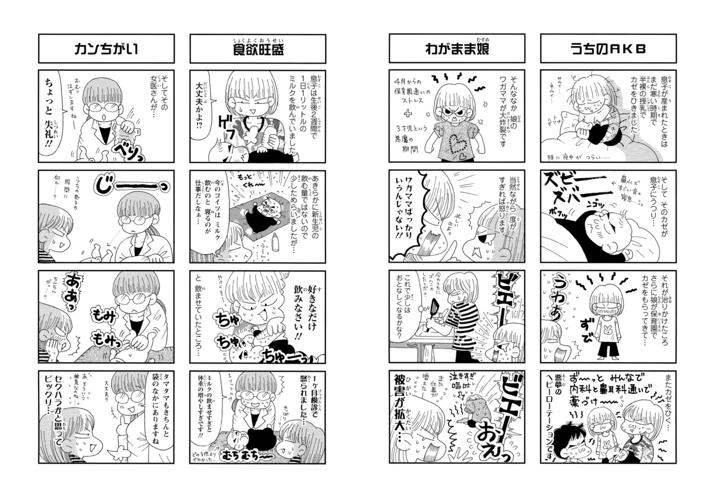 ミツバチ母さん、娘につづいて息子も出産! わが子はたしかに可愛いんだけど、それでも育児子育ては苦労がたえません。息子がもっとミルクを飲みたいとギャン泣きするから、1日1リットル飲ませていたら激太り! 検診で太りすぎと注意されたので、今度はミルクを薄めて飲ませてあげたら成長不良と診断! いい塩梅って難しい…。上の娘は保育園通いのストレスでワガママ全開! ワガママがすぎて叱りつけると、一転ビエーッ!と大泣き! さらに泣きすぎて、なんと部屋で嘔吐! また仕事が増えた…。思うようにはいかないものだけど、それでも楽しく子育てやってます♪