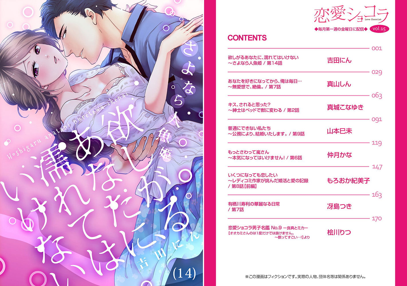 きっとあなたも恋したくなる♪甘すぎないオトナ女子のためのティーンズラブコミック誌!!あなたに恋をして、二人でなら何でも乗り越えていけると思えた──「欲しがるあなたに、濡れてはいけない」堂々完結!!胸キュンラブから心とカラダを狂わせる禁断ラブに刺激的なHシーンまで…見ごたえ十分、大ボリュームな1冊です!!【収録作品】■吉田にん:欲しがるあなたに、濡れてはいけない~さよなら人魚姫(14)■真山しん:あなたを好きになってから、俺は毎日…~無愛想で、絶倫。(7)■真城こなゆき:キス、されると思った?~紳士はベッドで獣に変わる(2)■山本巳未:普通にできない私たち~公務により、結婚いたします。(9)■仲月かな:もっとさわって嵐さん~本気になってはいけません!(6)■もろおか紀美子:いくつになっても恋したい~レディコミ作家が挑んだ婚活と愛の記録(8)前編<出張連載>■冴島つき:有栖川寿利の華麗なる日常(7)<描きおろしショートギャグ>■ここでしか見れない限定おまけ!桧川りつ:特別イラスト※雑誌を購入いただくと、単話購入よりもお得です!!※「いくつになっても恋したい(8)」は単話版の再掲載です。