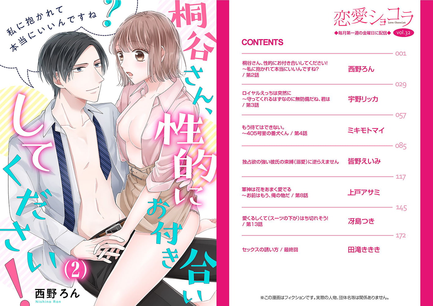 きっとあなたも恋したくなる♪甘すぎないオトナ女子のためのティーンズラブコミック誌!表紙には西野ろん先生が描く、王道一番☆恋する社会人カップルが目印!【収録作品】■西野ろん:桐谷さん、性的にお付き合いしてください!~私に抱かれて本当にいいんですね?(2)■宇野リッカ:ロイヤルえっちは突然に~守ってくれるはずなのに無防備だね、君は(3)■ミキモトマイ:もう待てはできない。~405号室の番犬くん(4)■《初登場》皆野えいみ:独占欲の強い彼氏の束縛(溺愛)に逆らえません~いっぱいえっちしたら信じてくれる?(読切)■《最終回》上戸アサミ:軍神は花をあまく愛でる~お前はもう、俺の物だ(8)■冴島つき:愛くるしくて(スーツの下が)はち切れそう!(13)【おまけ:雑誌限定連載!】■《連載》田滝ききき:セックスの誘い方/最終回皆野えいみ先生の商業デビュー作掲載!豪華ラインナップでお届け♪※雑誌を購入いただくと、単話購入よりもお得です!!