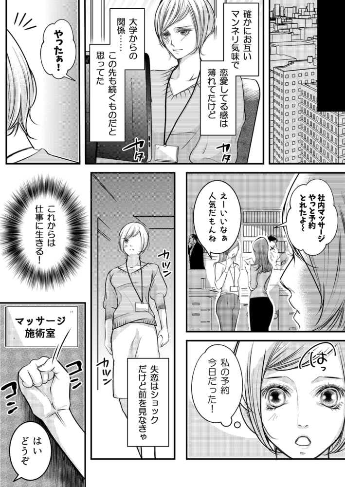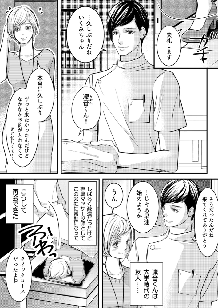 大学時代から6年付き合っていた彼氏にフラれてしまったいくみ。男友達の凜音が慰めてくれるがショックは癒えず…。心配した彼が経営するサロンでマッサージを受けることに。際どいビキニを着て、隅々まで丁寧にほぐされる身体。ただのマッサージのはずなのに、敏感なところに指が触れるたび、過敏にアソコが反応しちゃう。そんないくみの反応を楽しむかのように、太ももから股の方へゆっくりと指を滑らせてきて…。「このまま続けたら、次はどうなるかな?」優しい指使いは激しくなり、アソコの奥をグチュグチュとかき混ぜる。久しぶりの快感に、痙攣するほどイってしまって…!!私たち…このまま友達のカンケイ超えてしまうの?