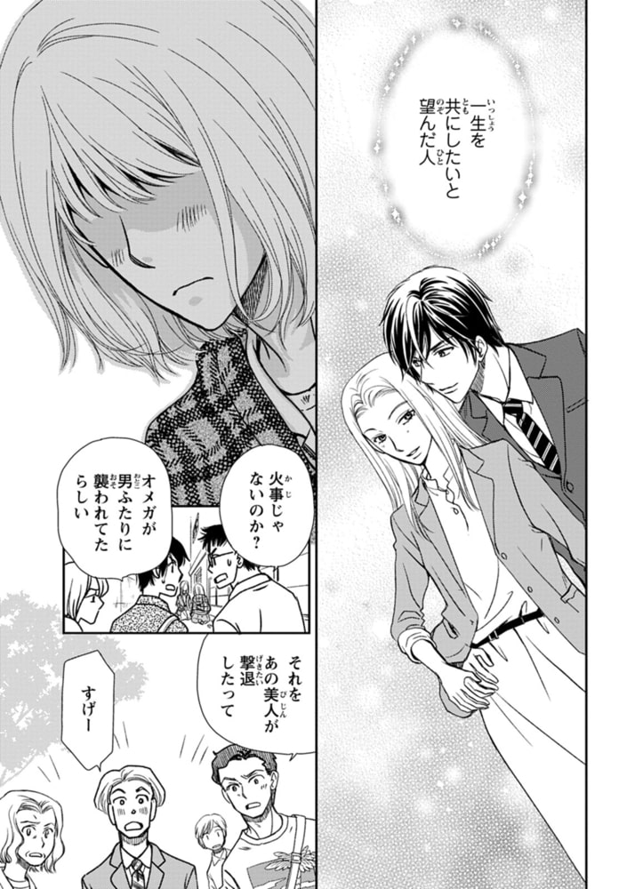 高橋あかね30歳OLは、平凡な女性ベータ。そんな彼女にはずっと大好きな人がいた。幼馴染の宝井佑輔、格好良くて有能な男性のアルファだ。けれど、アルファは番であるオメガを求めるもの…中学三年の第2の性別検査で、あかねがベータだと確定した時――失恋してしまう。次第に疎遠になっていき…そして、30歳になった今。あかねは体調不良で運び込まれ病院で、研究者になった佑輔と再会する。彼との再会に喜ぶが…佑輔は「発情」してあかねを襲う。自分はベータ、アルファの佑輔が発情するなんてありえない。しかし、佑輔は「俺のオメガ…」そう囁きながら、あかねのうなじを噛もうとして――!?