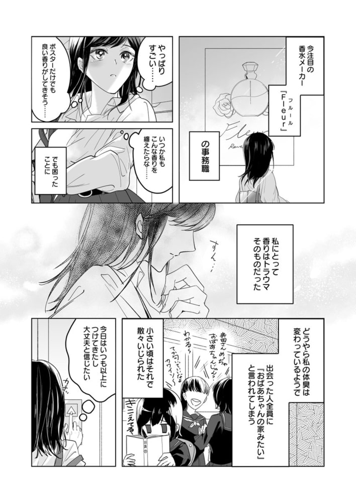 「お前は感じているだけでいい…どんどん香りが強くなる」――自分の匂いにコンプレックスがある新田由紀は香水メーカーに就職することになる。「今日はいつもより香水をつけたから体臭は隠せているだろう…」と思うもエレベーターで出会ったイケメンに突然腕を引かれて、体中の匂いを嗅がれて!?そんなところまで嗅がれたら体が熱くなってきちゃう…っ!