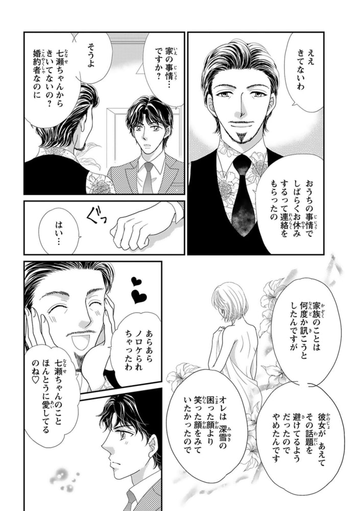 きょうは誕生日。恋人の亮平にプロポーズされ、最高の幸せをかみしめたはずの深雪の心は、その夜、絶望に塗りつぶされた。婚姻届けをだしにいく直前、昔の婚約者・公顕が現れたのだ。しかも、亮平の仕事の取引き相手として、何食わぬ顔で…。公顕は強い権力をもつ本家の跡継ぎで、分家の深雪は無理やり婚約させられていた。なにもわからない幼いころはまだよかったが、友人関係も高校への進学さえも「にいさま」に支配され、深雪は二十歳の誕生日当日に公顕から逃げてきたのだった。「今度こそ逃がさない。おまえは私の花嫁なんだから。」そういって公顕は亮平のいない深雪のアパートに押し入り…!?