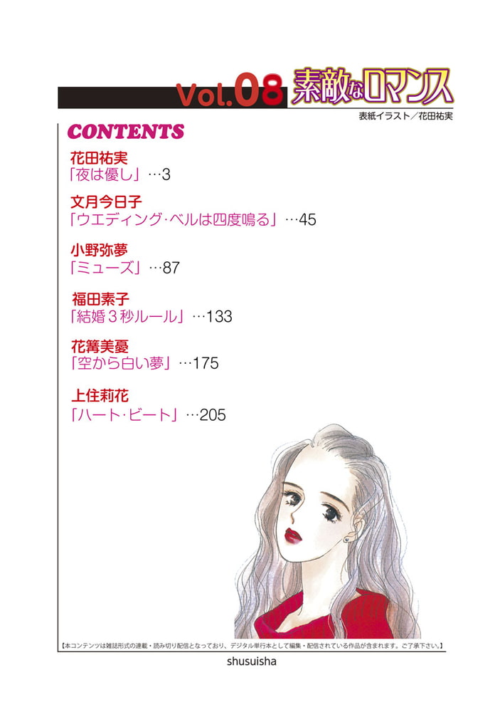 結婚拒否の3人のお姉さまに囲まれ、彼との仲は大ピンチッ!でも苦労の先にはみんなのハッピーウェディングが待っていた!? ――「ウエディング・ベルは四度鳴る」(文月今日子)ほか、オトナの恋愛、幸せな結婚をあなたに デジタル雑誌「素敵なロマンス」Vol.8!!