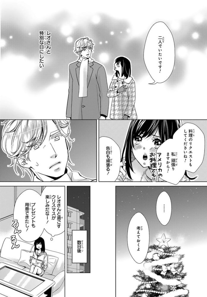 大家族の長女として育った紗与は甘えることが大の苦手。その性格が災いして彼氏にも振られてしまい、失恋のショックを癒すためバーでヤケ酒していたら、金髪のイケオジ外国人・レオに止められる。押しの強いレオに根負けし、失恋の経緯を話したら“甘える練習”を提案され、酔った勢いで抱かれてしまう!彼の外国人サイズが入るよう中がぐずぐずになるまでほぐされ、もう入れて欲しいのに練習だと言って「おねだり出来たら入れてあげる」と言葉責めをされて…!?しかも一夜限りと思っていたのに、不動産会社に勤める弟のミスのせいで、偶然にも顧客だったレオの住む場所がなくなり、やむなく同居することになってしまい――!?