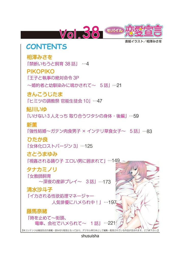 イケナイプレイでイかせて? フェチなHで調教中 連載、読み切りの人気作品がもりだくさん♪ 拾った彼氏と…触手プレイ!? さとうまゆみ「視姦される踊り子 エロい男に囲まれて」イケナイプレイでイかせて? フェチなHで調教中 連載、読み切りの人気作品がもりだくさん♪ 拾った彼氏と…触手プレイ!? さとうまゆみ「視姦される踊り子 エロい男に囲まれて」 教え子とSの女王になるために、Mになって調教H。 タナカミノリ「女教師飼育~深夜の産卵プレイ~」 時間を止めて…公衆の面前で痴○プレイ!? 藤馬奈緒「時を止めて~街頭、電車、会社でハメられて~」 心もカラダも切なくなる 乙女のLOVE&Hコミック!モバイル恋愛宣言で大人気作品が登場!!(C)相澤みさを/PIKOPIKO/きんこうじたま/鮎川いゆ/新薫/ひたか良/さとうまゆみ/タナカミノリ/清水沙斗子/藤馬奈緒
