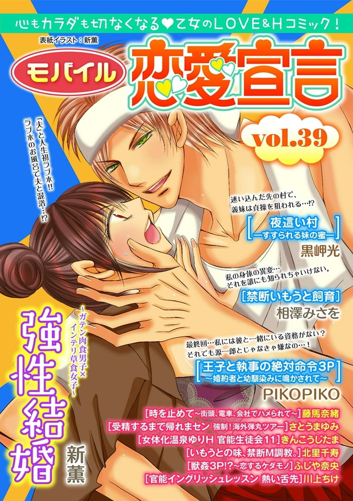 逃げ場なし! 身体を開かれ絶倫プレイ! 連載、読み切りの人気作品がもりだくさん♪迷い込んだ村で、村人達から処女を狙われ!? 黒岬光「夜○い逃げ場なし! 身体を開かれ絶倫プレイ! 連載、読み切りの人気作品がもりだくさん♪迷い込んだ村で、村人達から処女を狙われ!? 黒岬光「夜○い村―すすられる妹の蜜―」 異国の地で囚えられ…強○+FF59恥辱H! さとうまゆみ「受精するまで帰れまセン 強○! 海外弾丸ツアー」 執事に愛撫されながら問われる、本当の気持ち。 PIKOPIKO「王子と執事の絶対命令3P~婚約者と幼馴染みに鳴かされて~」 心もカラダも切なくなる 乙女のLOVE&Hコミック!モバイル恋愛宣言で大人気作品が登場!!(C)新薫/相澤みさを/きんこうじたま/黒岬光/PIKOPIKO/北里千寿/さとうまゆみ/ふじや奈央/川上ちけ/藤馬奈緒