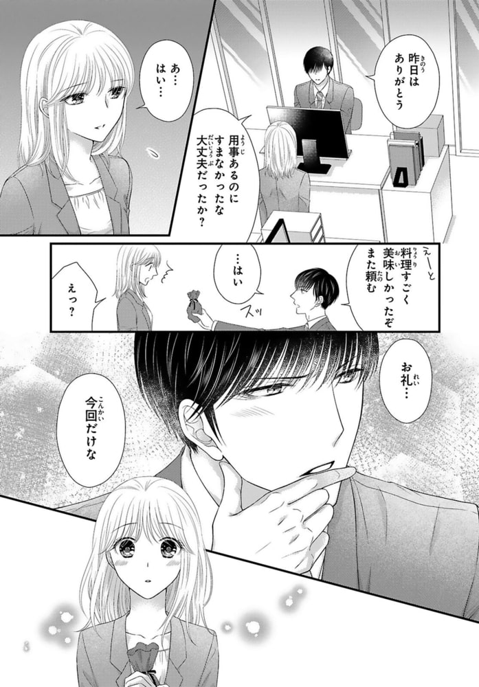 「そんな顔したら止められないだろ」鬼部長の吉川さんを交通事故で怪我させてしまった道神日菜子。責任を感じて身の回りの手伝いを申し出たが、失敗ばかりで逆に迷惑ばかりかけてしまう。仕事の手伝いがダメなら生活の手伝いを…と、料理を作ってもまた失敗…!自信を失い落ち込む日菜子に、部長は怒らず優しく励ましてくれて…。仕事では厳しいけど実は優しい部長に惹かれ、迫られて…。恥ずかしいけど嫌じゃない、部長の愛撫に感じてしまい、びしょ濡れになってしまう。そんなカラダの変化を隠したいのに部長はすぐに気づいてしまって…。優しいけども的確に気持ちいいところを攻めてくる部長に、耳元で囁かれたらもう我慢できなくなり…っ!