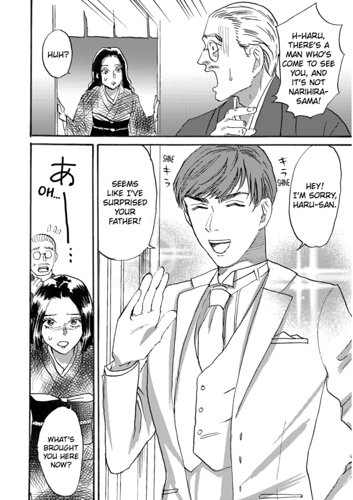 Using her status as a fallen aristocrat as the reason, female student Haru falls into a slump after being turned down by all of her suitors one after another. Her final suitor happens to be an officer in the army. In order to rebuild her childhood home, she is determined to ensure he doesn’t turn her down. Just as she strengthens her resolve, Warrant Officer Narihira appears on the scene riding on horseback. As he approaches, he asks her, “Will you marry me?” The instantly dismayed Haru delays her response, asking him to give her more time to consider. Passionate about her studies, the serious Haru is more than a little off-put by the warmongering soldier. Narihira continues to approach her ardently, which begins to sway Haru’s heart. Just as this is happening, as Narihira is escorting her home, he suddenly steals a kiss on her lips! Usually ever the gentleman, he gazes at Haru like a predator looks at its prey...