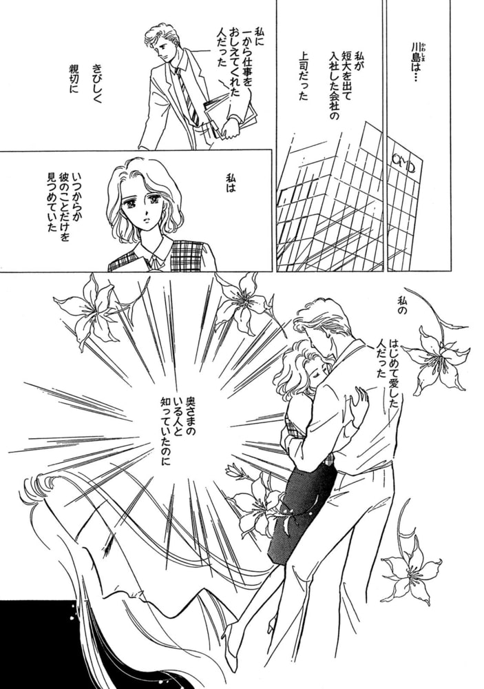 私…どうかしているんだわ。「…お願い。1度だけでいいの」何を言うつもりなの。この人は他の女の夫なのに…。「…抱いて」結婚する…6月、若葉の季節に…明るい光の中、降り注ぐ花びらの中。私は智史さんの奥さんになる…。智史さんのお母様に式場の見学や衣装選びに引っ張り回され、レストランでひと休みしていた時、彼がいた!? え…!? 川島さん…!? いつから…そこに…? 私に…気付いている…?「…久し振り…2年ぶりかな」心臓が止まるかと思った。「元気そうだね」「…ええ…川島さんも…」声が震えた…。背中が熱い…あの人の視線を感じる。2年前にさよならした人。もう2度と会いたくはなかったのに…。