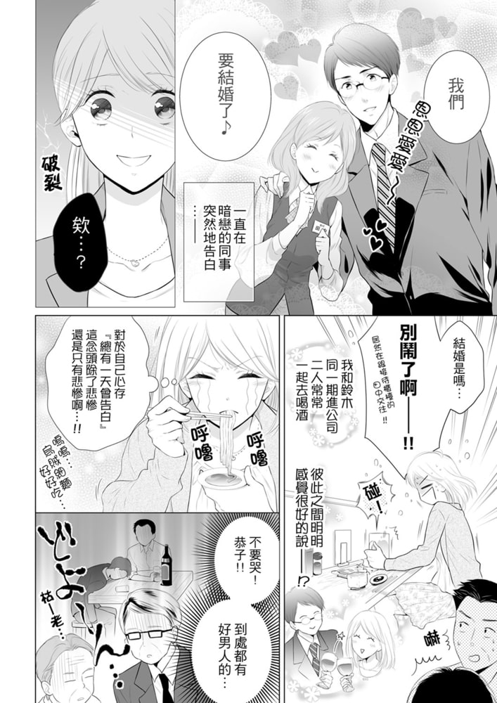 「呀…啊…要高潮了…,不…不行啊…!!」一宮恭子、28歳。沒有男朋友的單身貴族。失戀當天,被又粗又熱的肉棒玩弄得神魂顛倒…。――借酒發春的我,與帥哥店員翻雲覆雨了一整晚。被療癒得軟綿綿的我,第二天竟然看到他來我的公司上班!?「我還是第一次那麼興奮呢」加班時,被他的肉棒直搗黃龍,讓我連體內都完全沸騰。隨著抽插的猥褻聲響,私處的痛快無法停止…。但是,他接近我似乎還有其他原因?他的真面目究竟是…!?