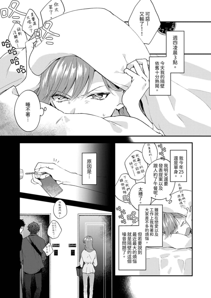 社畜OL紗織每晚都為隔壁鄰居產生的噪音而感到很困擾。睡眠不足+每天加班的生活使她積攢了太多的壓力,工作和戀愛也都不順心…。就在這時,給了她鼓勵的竟然是導致一切問題的元兇——「隔壁的派對男」!?「紗織小姐,我覺得妳真的非常努力了哦」為什麼……為什麼你會知道我想要聽怎樣的鼓勵呢?