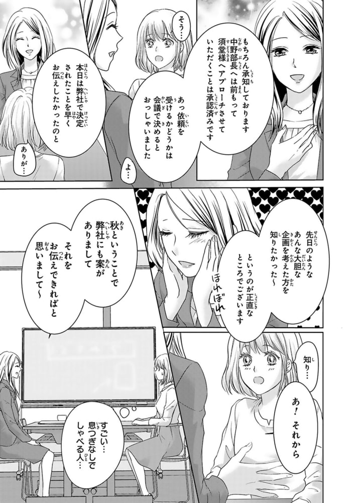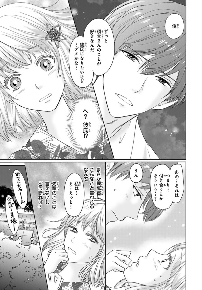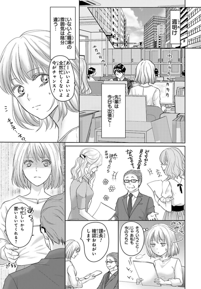 「ここからは可愛い後輩だ」仕事で失敗続きの須堂美津子は、仕事帰りに川を覗き込もうとしたら身投げと勘違いされて通りすがりの男性に助けられることに…!その男性は、実は大学の先輩で海外勤務から帰ってきた中野先輩。妹のように可愛がってくれた学生時代に憧れた先輩との久しぶりの再会に盛り上がった美津子は酔い潰れてしまい、ホテルに行くことに…。終電もなくなってしまい、二人で時間を潰していると唇が触れあい!!「妹みたいだと思ったことないから」と押し倒されて期待してしまう…!?さらに先輩が自分の上司に就任して…!!