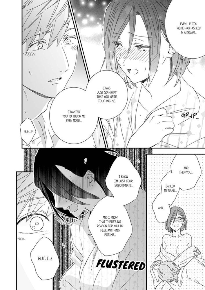 With his sweet voice, my boss whispered into my ear, "Tell me wherever it feels good, okay?" He's only giving me a massage to help ease me into a good night's sleep, but everywhere he touches feels like it's on fire. I work for a bedding and linens manufacturer. Thanks to my anxiety, I never get a good night's sleep. My boss, Mr. Takarai, on the other hand, always seems so well-rested. One day, after staying late at the office, my boss and I ended up messing around... which seemed to be the secret to a great night's sleep!? It all started with a massage to help me get to sleep, but it feels too good... I want him to touch me even deeper!!