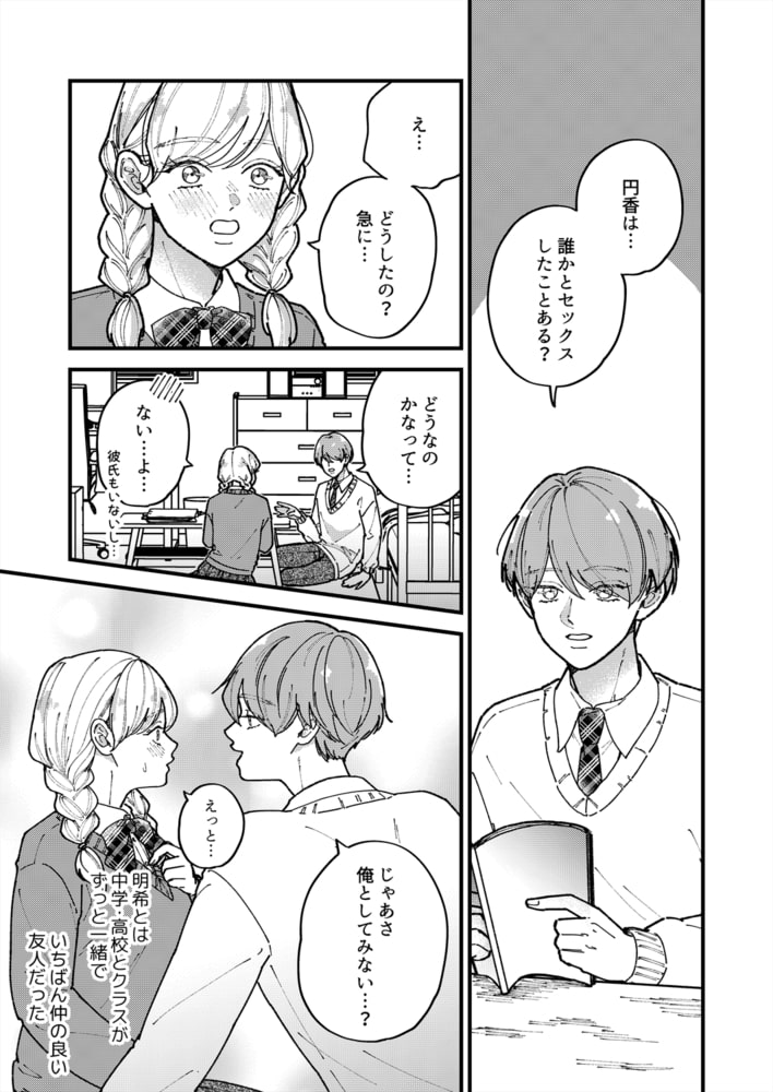 「円香は…誰かとセックスしたことある?」密かに片思いしていた男友達の明希(あき)に誘われ、初めてSEXをした私。それから5年、疎遠になっていたけど同窓会で再会!変わらないかっこよさに思わずドキドキしちゃうけど、どこかすました態度で…。昔の無邪気な感じと違って寂しいな…なんて思ってたら、偶然2人きりになり、ハプニングで彼を押し倒しちゃった!?しかも大きくて硬いモノが私のアソコにあたって…。これって期待しちゃってもイイの?同窓会を抜け出しホテルへと行くと、激しいキスと愛撫で何度も求めてくる明希。乳首を舐められ、優しい手つきでアソコを触られたら恥ずかしいぐらい濡れちゃって…。「会ってなかった5年分、いっぱいシていい?」絶倫な彼の濃密SEXでトロトロにされてしまう!