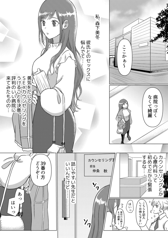 彼氏とのセックスが上手くいかず悩む美冬は、SEXセラピーを受けることに。緊張しながらクリニックへ向かうと、担当医が若いイケメンでびっくり。しかもなんと弟の友人“秋くん”だった!知り合いにSEXの相談するなんて恥ずかしすぎる…と悶えていると、「大丈夫、リラックスして」と優しく抱きしめてくれて…。甘く囁きながら、長い指で下着の中をクチュクチュ弄られたら、心地よさと気持ちよさでもうトロトロ。SEXセラピーってこんな事までするの??戸惑いながらも、もう指と舌だけじゃ物足りなくて秋くんを求めちゃう…。彼氏とのエッチじゃ感じないのに、なんでこんなにズブズブに濡れちゃうの――…?