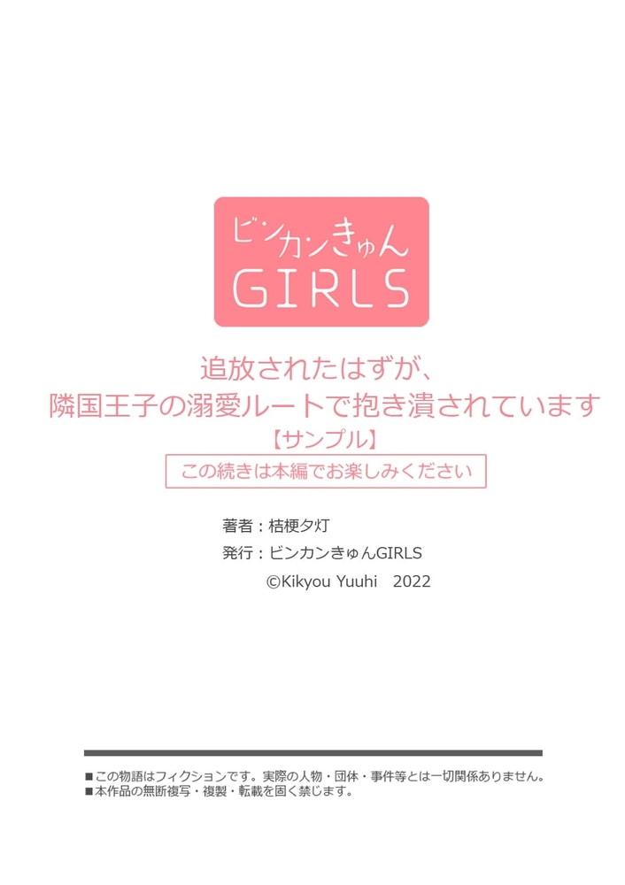 「もっと可愛くイクとこ見せて…」追放されたら隣国王子の溺愛ルート!?ぐずぐずになるまで抱き潰されて、強すぎる快感に乱されちゃう―!婚約破棄された転生悪役令嬢のリゼ。追放を言い渡され、破滅ルートが確定してしまう。すると居合わせた隣国王子・ネヴァが「追放するなら彼女を下さい」なんて言い出して!?早速、屋敷へ連れ帰られ、ベッドに組み敷かれて、冷酷と噂される彼の慰み者にされる…。そう思っていたら、何故か甘いキスを落とされて!?熱い指先で丁寧に愛撫され、初めての快感にヒクつき跳ねる身体。くちゅくちゅとナカのイイところを弄られたら、気持ちよすぎておかしくなる―!