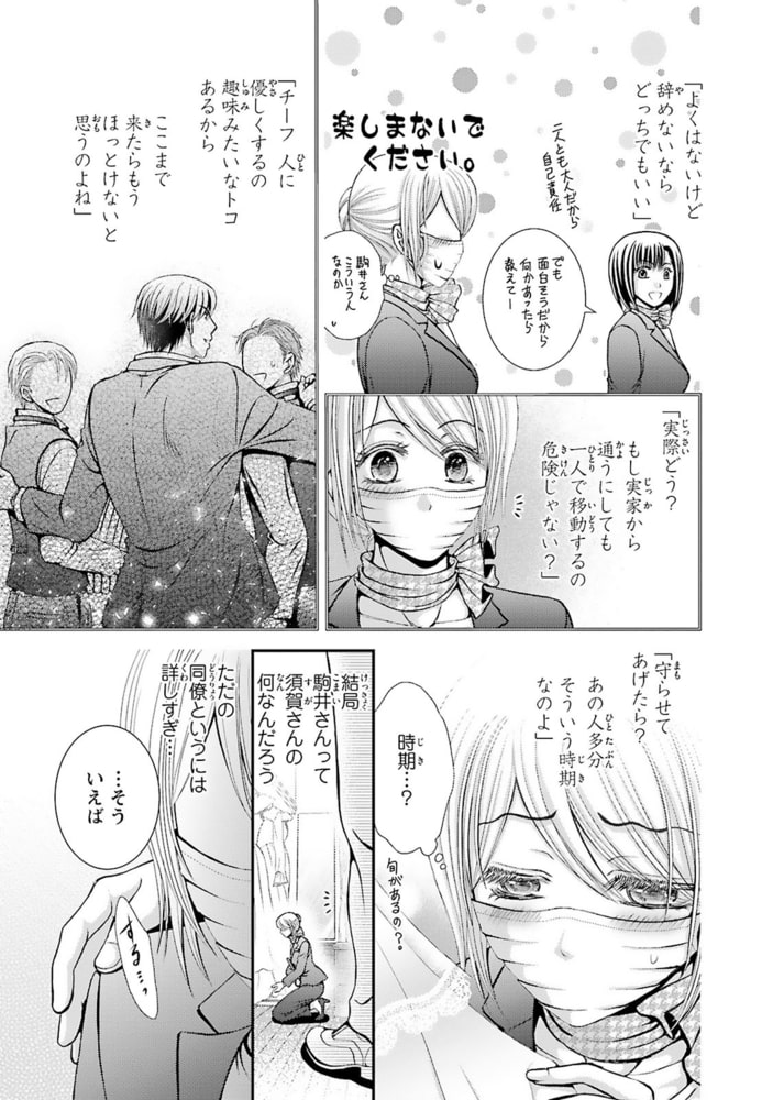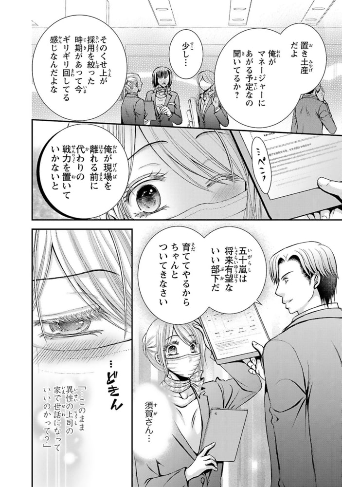 「彼氏として側にいてやるよ」ウェディングプランナーに転職した五十嵐愛美。教育係で直属の上司の須賀光喜さんは優しくて頼りになるけど、いつも距離が近い!しかも住居も隣で離れられない!!仕事ではよく教えてくれて優秀で、多くのことを学びたいと思っているけどやっぱり気が詰まってしまう…。八つ当たりだとわかっていてもつい須賀さんに当たってしまったが、部屋に侵入者が出たことにより須賀さんの部屋に居候することになり――!!私を守るために彼氏として振る舞ってくれることになったけど、須賀さんの本心が見えなくて…。