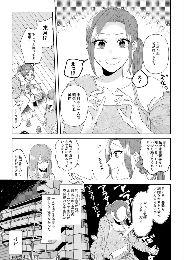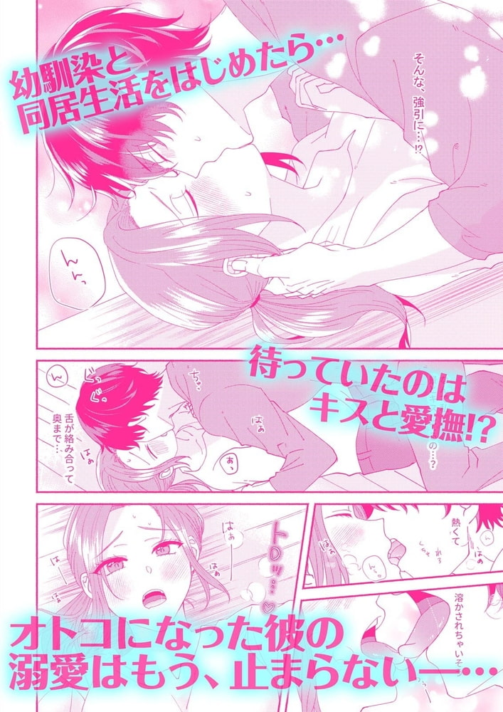 「好き。俺は本気だよ」ある日突然、親友からルームシェアを解消されてしまったOL・美玲。仕事で忙しい毎日だし、家事もからっきしダメで、1人でやっていける自信なんてないよ~!すると、幼馴染の景が「じゃあ俺が住む」と申し出てくれて。面倒見も良く、料理人としての腕を振るって美味しいご飯も作ってくれる景。何より気心の知れた仲だから安心できるし、言う事なし!周りは私達の関係を冷やかしてくるけど、そんなんじゃないよね?と、同意を求めたら…いきなりキスされて!?「ずっとそういう目で見てた」そう言って何度も重なる唇。さらに熱く見つめながら、大きな手で全身を甘く刺激されたら拒めないよ―…。同居中、オトコになった幼馴染の溺愛はもう、止まらない!?