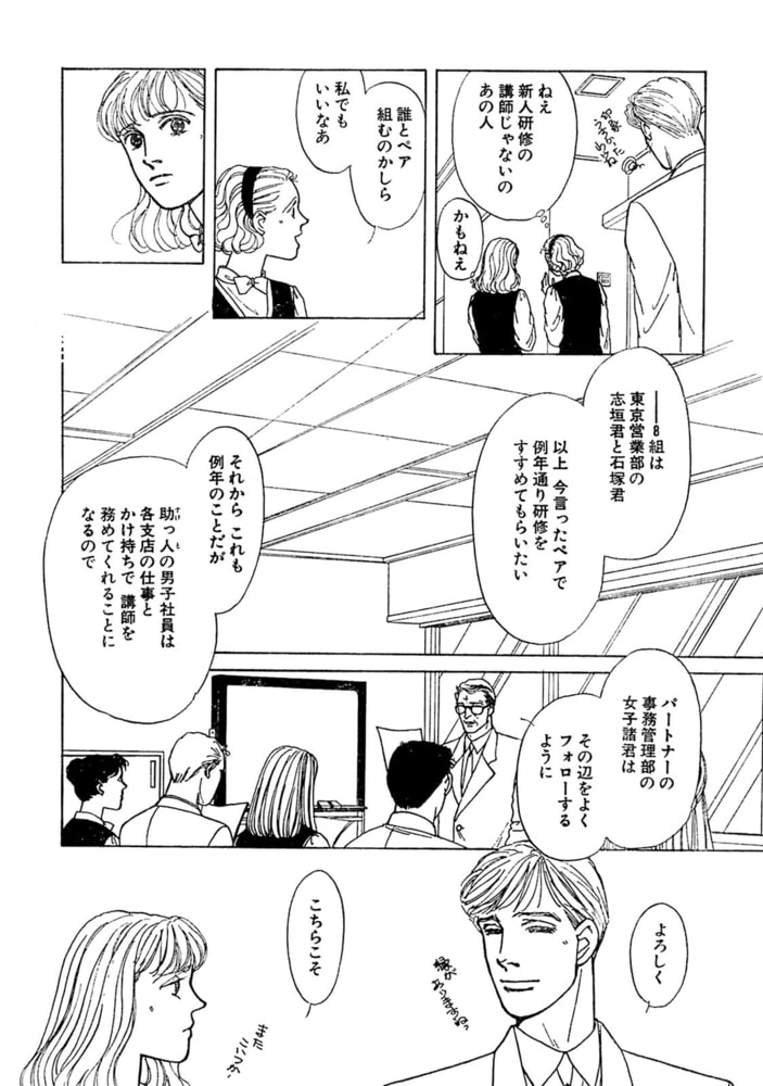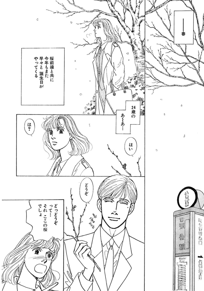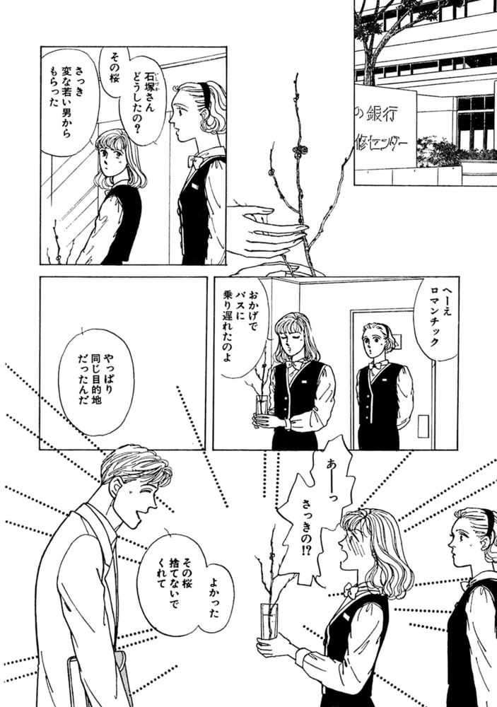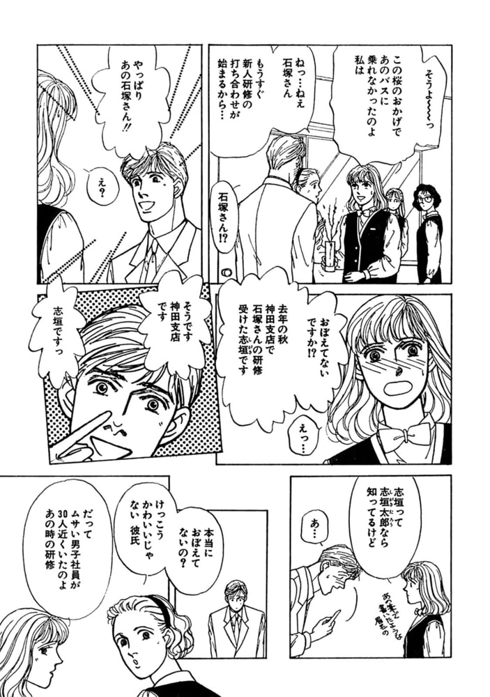春、桜前線と共に今年もまた早々と私の誕生日がやって来る。憂うつな気分で桜を眺めながらバスを待っていると見知らぬ男にと桜の枝を差し出された!? 強引に手渡されて戸惑っていると、その男はさっさとバスに乗って行ってしまった。「私も乗るのよ、そのバス。バカ―!!」結局乗り遅れた上、会社まで桜を持って来てしまった。するとその男、志垣が会社にいた!? なんと昨年、私の研修を受けていたと言う。しかも今年は一緒に講師として研修をする事に!? これって偶然? それとも運命? なんてドキドキする事もなく、テキパキと新人研修は進み、志垣はお局OL達の誘導尋問の餌食になって、ロマンスの欠片も無い。こうやって毎年春を迎えていくのかしら…。