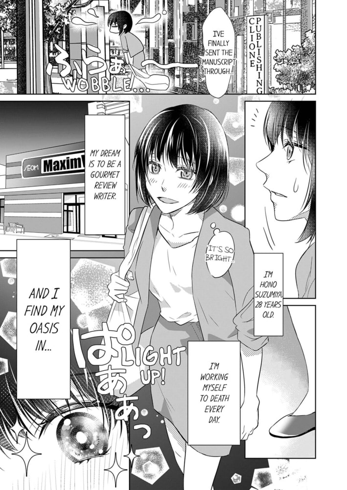 “Since you’re full, I’ll make you feel good now.”He suddenly kisses me like he is trying to devour me. No… If he keeps stirring me with his naughty fingers like that… I’ll cum!I’m Hono Suzumiya, 28 years old, and I’m an aspiring gourmet review writer. I always see this delinquent who wears a demon jacket at the supermarket I often go to, and I’m really scared of him. I thought I’d managed to avoid him today, but… He suddenly came to my apartment…!