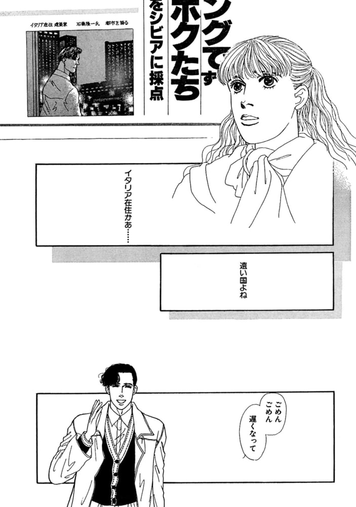テナントビルのデザインという大仕事を依頼するためイタリアから著名デザイナーを招へいする事になった。アテンドを指示された広美が空港でイタリア人を探していたら、現れたのは言葉と態度だけイタリア人並みに軽薄な日本人、石橋隆一だった。迎えの車の中でいきなり「君恋人いないの?」と聞いてきたり、街並みを見回して「それにしても10年ぶりに見る日本の女の娘は綺麗になったねえ」最低!! あまりにも愛敬のありすぎる石橋に、すっかりへきえきとしてしまう。しかも社長と石橋は、まるで恋人同士のように親しくしている。なのに私を見るとにこやかに手を振って来る。でも仕事の話の時はマジメな顔するのにね。軽いだけの人じゃないみたい…。
