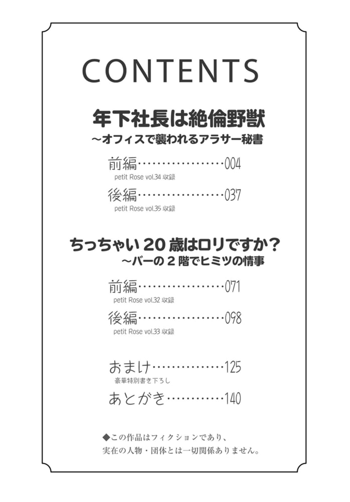 【★描き下ろし番外編15P収録★ この作品は同タイトルの電子単行本版です】男を見る目がない29歳・社長秘書の礼央奈。ある日、合コンで意気投合した年下の彼と一夜を共にすることに。けれど彼は、挿入中に他の女と電話を始めるサイテー男だった! そして新社長との初顔合わせ。そこにいたのは、まさかのサイテー男!?意外に頼りがいのある彼は、甘え下手なアラサー独身の理想をどんどん叶えていく…。そして台風で誰もいない夜のオフィス。彼のケモノ的な求愛行動に、礼央奈の心はついに絡めとられて――!? 2人のその後を描いた豪華描き下ろし付き!年上バーテンダーと○リ系女子のイケない関係を描いた人気作、「ちっちゃい20歳は○リですか?~バーの2階でヒミツの情事」も同時収録!