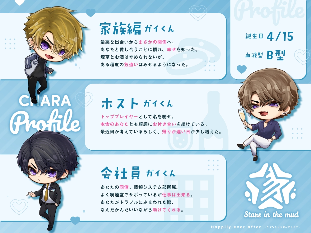 ![Happily ever after-クズなチャラ男が愛しくて- [Stars in the mud] Happily ever after-クズなチャラ男が愛しくて- [Stars in the mud]](http://img.dlsite.jp/modpub/images2/parts_ana/RJ01347000/RJ01346946/674652f40e188864f2ed7384d855e022.jpg)