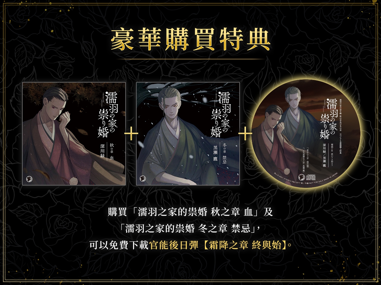 「濡羽之家的祟婚」是自2017年7月起每月連續發售,全篇共四卷的成人女性向情景Drama CD。