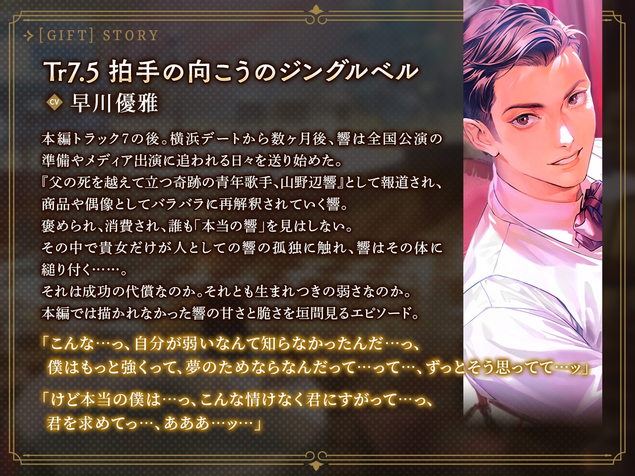 ![キャバレーと角砂糖 -1968- 山野辺響 Gift「Tr7.5 拍手の向こうのジングルベル」 CV:早川優雅 [ひつじぐも] キャバレーと角砂糖 -1968- 山野辺響 Gift「Tr7.5 拍手の向こうのジングルベル」 CV:早川優雅 [ひつじぐも]](http://img.dlsite.jp/modpub/images2/parts/BJ02249000/BJ02248863/BJ02248863_0e602635d26837562c807ebc4ece2a22.jpg)