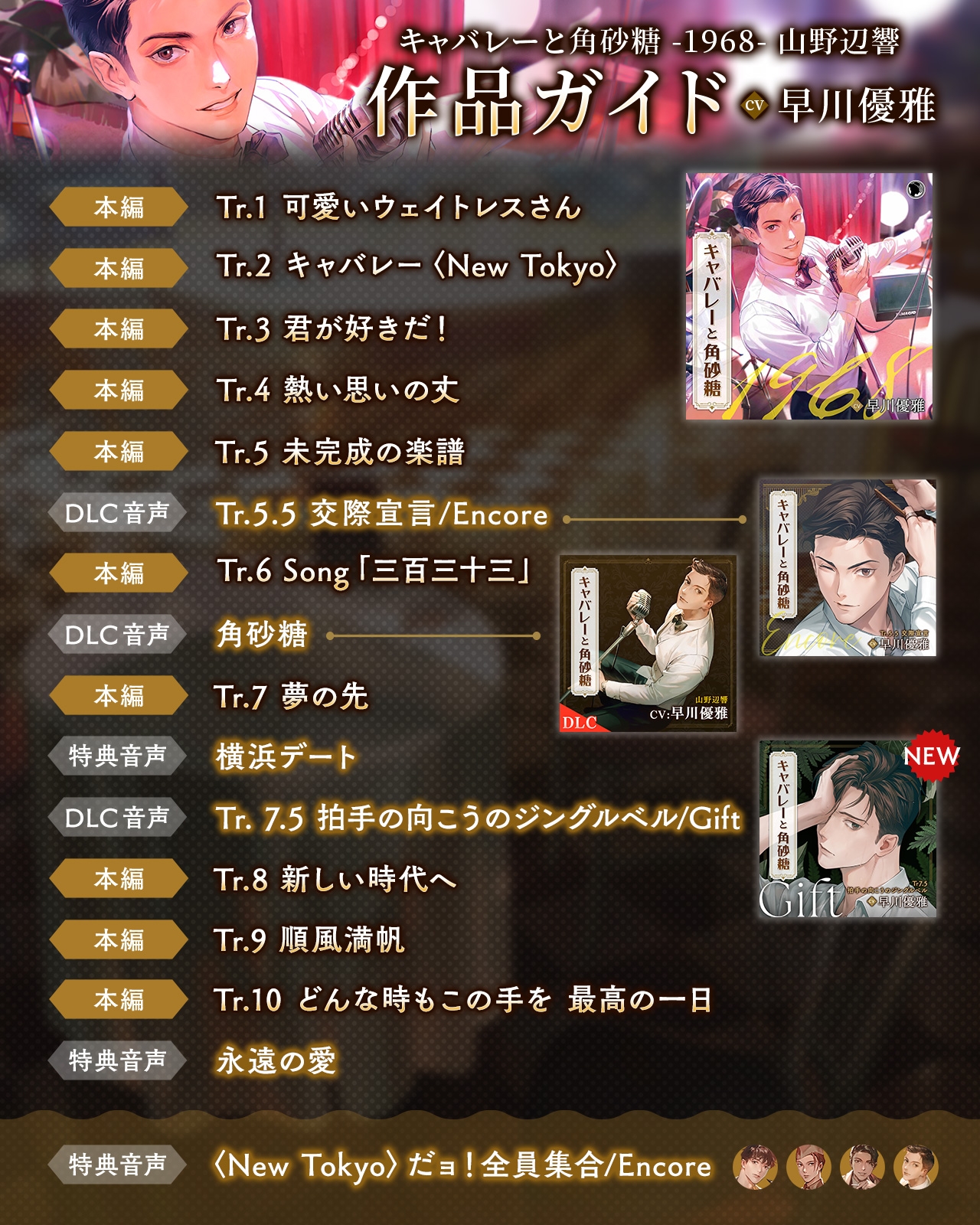 ![キャバレーと角砂糖 -1968- 山野辺響 Gift「Tr7.5 拍手の向こうのジングルベル」 CV:早川優雅 [ひつじぐも] キャバレーと角砂糖 -1968- 山野辺響 Gift「Tr7.5 拍手の向こうのジングルベル」 CV:早川優雅 [ひつじぐも]](http://img.dlsite.jp/modpub/images2/parts/BJ02249000/BJ02248863/BJ02248863_fc01a480b2b9336a4f7a96dcf9ea2024.jpg)