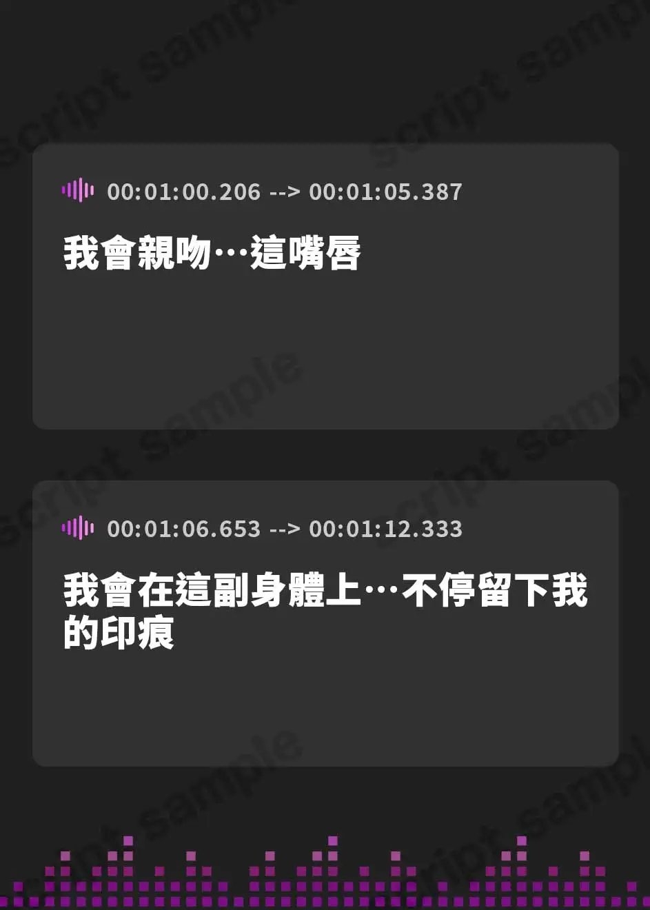 元から【台詞を使わずに表現したい音声作品】として作りましたので、ご了承ください。